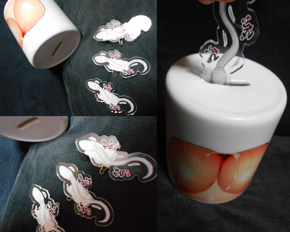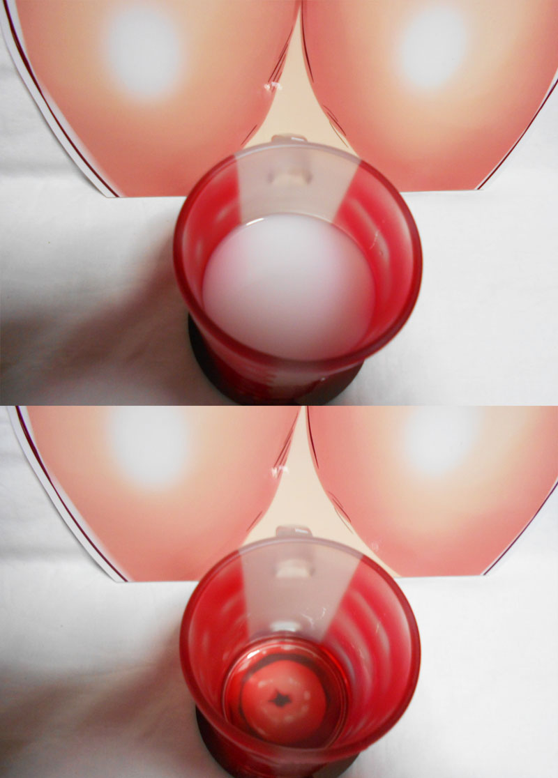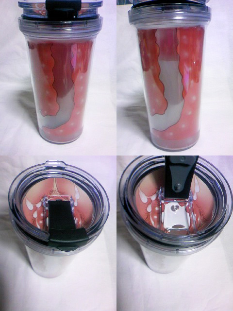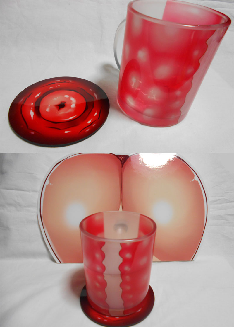 断面図ガラスマグカップと子宮口コースター、あと汁飲みたいモブ紙コップたち